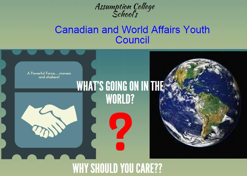 Do you get “fired up” about what is going on in the world?   Do you want to have your voice heard on the issues that matter to you?   Then ACS’s newest club,  CWAYC  (Canadian and World Affairs Youth Council),  is for you!